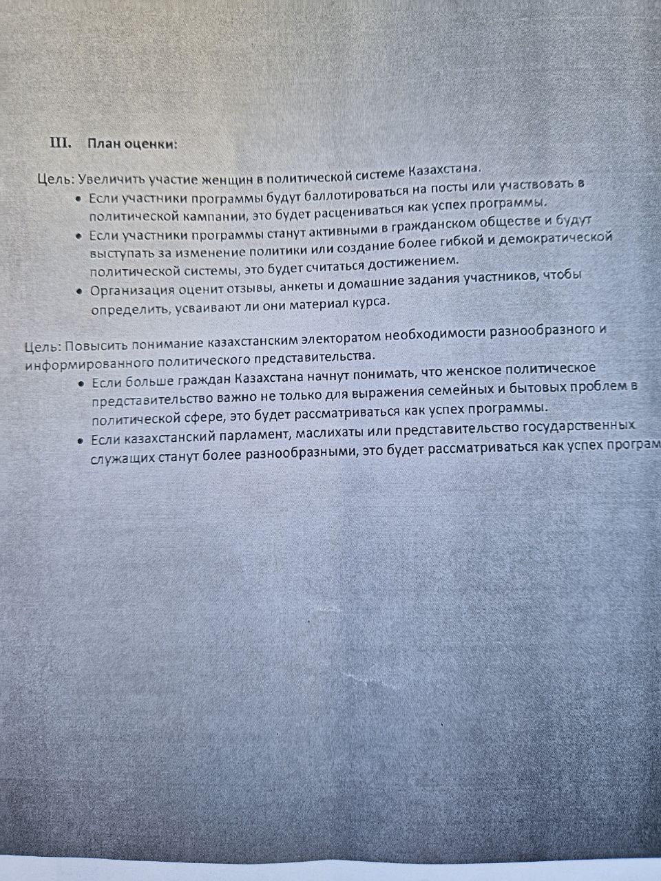 Цель гранта звучит вполне себе благопристойно: «Продвижение политического участия женщин в Казахстане». Сумма — $50 тысяч. На поверхностный взгляд, чинно и благородно.