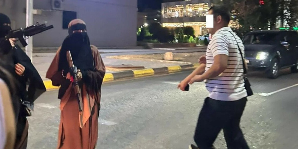 В Казахстане девушки-подростки в никабах разгуливали по улицам с игрушечными автоматами и делали вид, что стреляют в прохожих. Полиция задержала их.