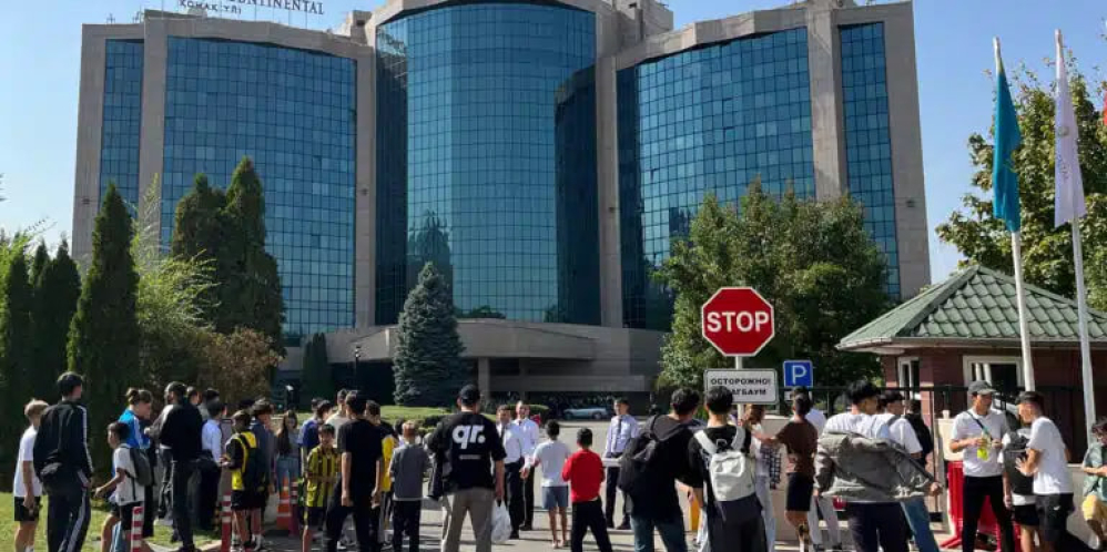 Приезд мадридского «Реала» в Алматы вызвал огромный интерес: у отеля InterContinental уже несколько часов собираются сотни людей, которые надеются увидеть любимых футболистов и сфотографироваться. Большую часть составляют школьники с плакатами — чаще всего с именами Килиана Мбаппе и Винисиуса Жуниора — и общая атмосфера больше напоминает праздник, чем ожидание команды.